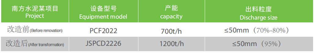 產量提高 : 通過技改后,可實現(xiàn)提產 50%,徹底滿足水泥廠技改工藝所帶來的石灰石需求提升。