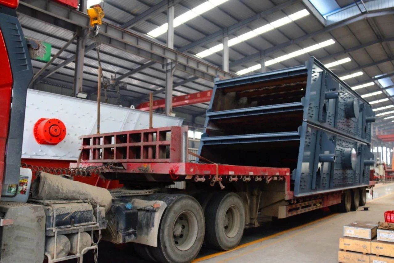 走進鑫金山生產(chǎn)基地,一片繁忙而有序的景象映入眼簾。一輛輛貨車整齊排列,工人們正緊張而熟練地將各類設備吊運裝車。從巨大的破碎機到精密的篩分設備,每一臺都承載著鑫金山對品質(zhì)的執(zhí)著追求和對客戶的鄭重承諾。