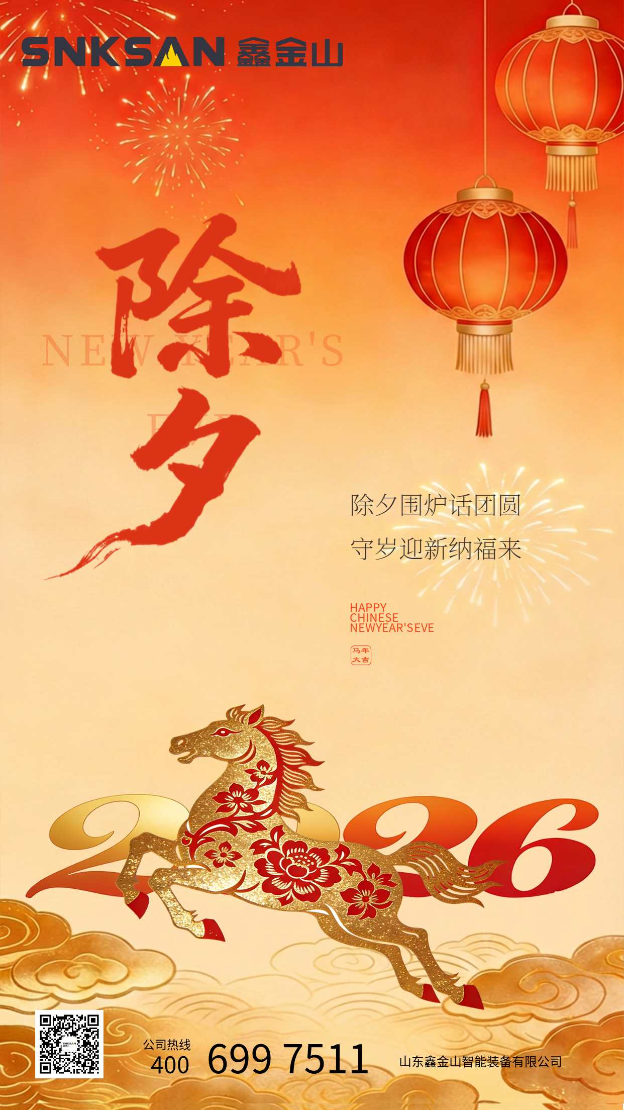 爐火正旺,馬蹄聲疾。值此除夕團(tuán)圓之際,鑫金山向您致以最誠(chéng)摯的新春?jiǎn)柡?!感謝過(guò)去一年里的信任與支持,2026 年,愿我們繼續(xù)攜手,以實(shí)干破局,以匠心筑夢(mèng)。祝您在馬年里:宏圖大展,基業(yè)長(zhǎng)青,闔家安康,福暖四季!