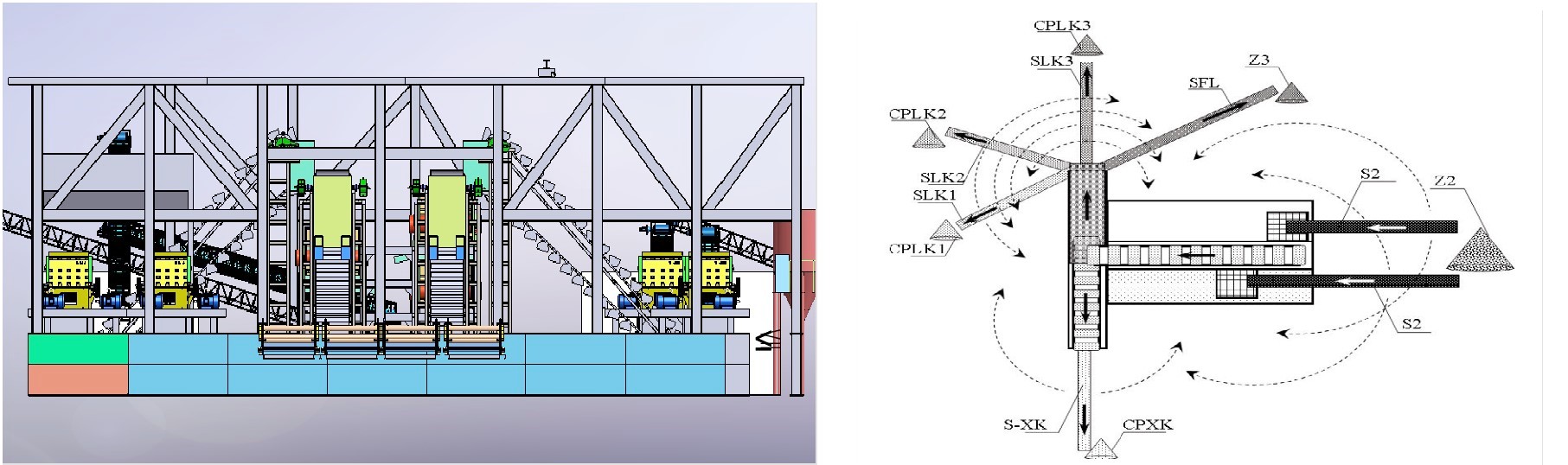 系統(tǒng)集成化的設(shè)計,縮短工藝流程,減少了工序和設(shè)備, ≤1200mm的原料直接通過2段工藝可得到50%高品質(zhì)砂, 通過3段工藝就可100%純制砂。